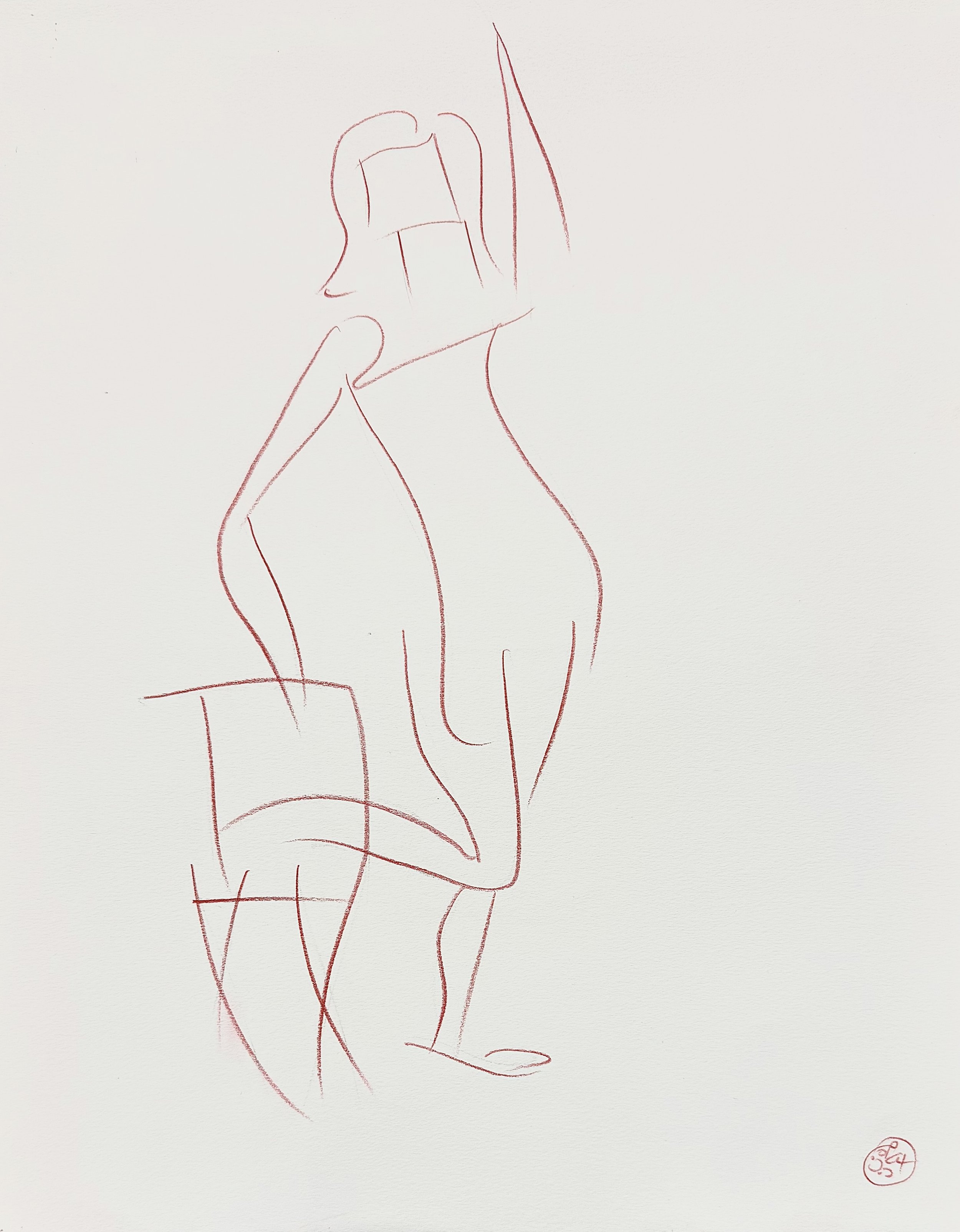 Dialogo Silencioso es un dibujo finamente ejecutado, de 11 por 17 pulgadas, que captura la serena tensión entre presencia e introspección a través del estudio de una pose al desnudo de 30 segundos de duración, emparejado con una silla. La composición equilibra trazos seguros y deliberados con áreas de tranquila contención, permitiendo que el espacio negativo respire e invite al espectador a una sutil interacción de forma y vacío. Cada marca posee una suavidad asertiva, simultáneamente arraigada y de espíritu libre, reflejando un diálogo matizado entre la vulnerabilidad y la fuerza de la figura.